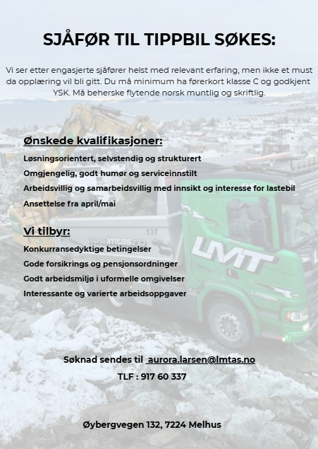 Vi søker etter tippbil sjåfør: